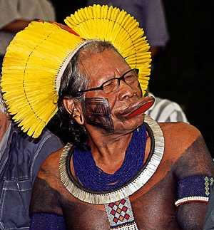RAONI, A CELEBRIDADE Numa entrevista exibida na noite deste domingo na TV francesa TF1, o cacique Raoni, chefe dos Caiapó, ameaçou "matar os brancos" que construírem a hidrelétrica de Belo Monte, no Pará. Raoni, que ganhou o mundo com o cantor Sting defendendo a preservação da Amazônia, falou rodeado de crianças da tribo, adiantando porém que poupará os "as crianças dos brancos".
