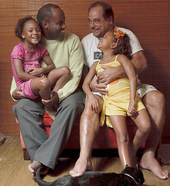 Casal de homossexuais com as filhas de 6 e 8 anos que adotaram juntos no Rio de Janeiro